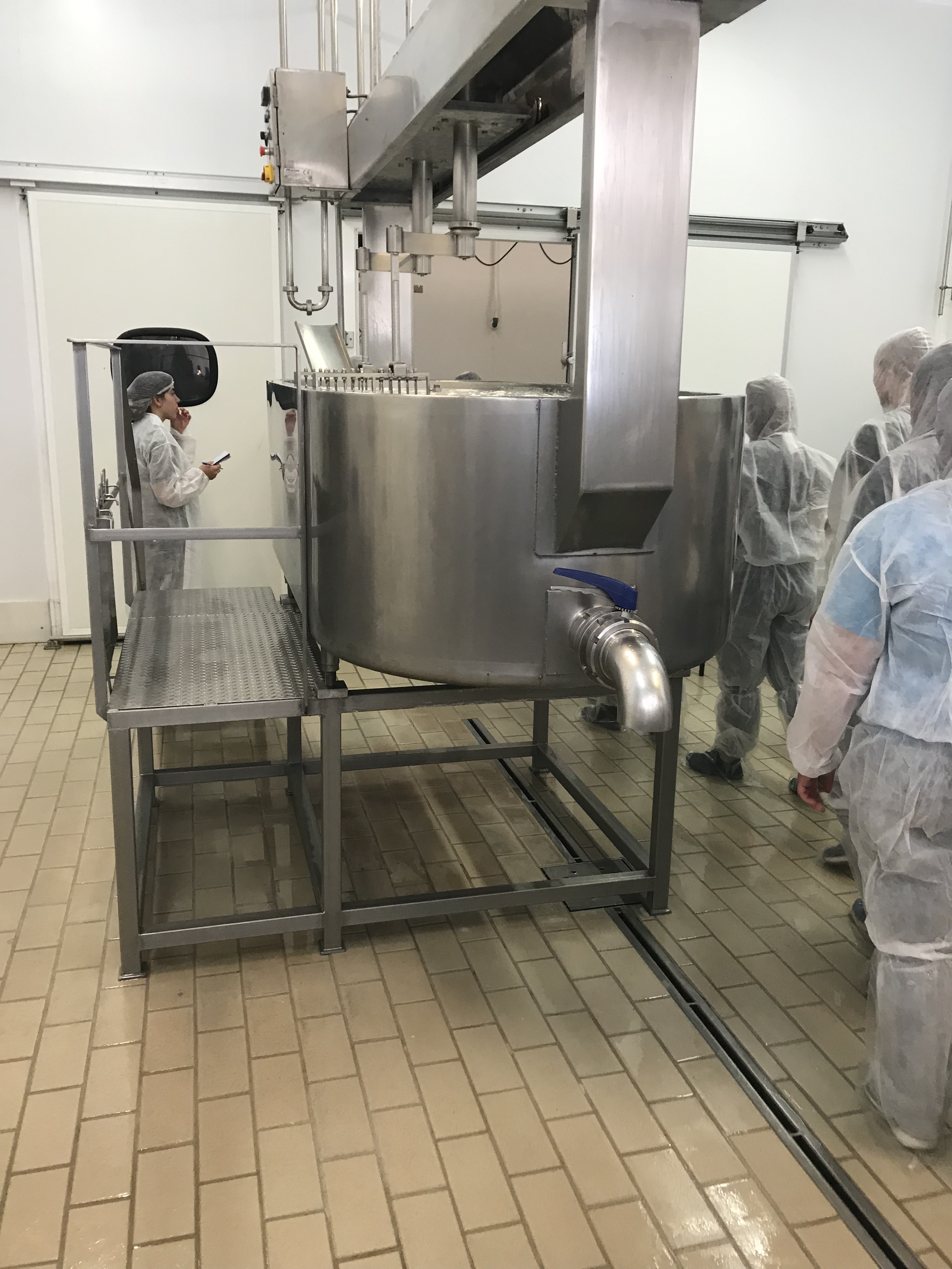 During the tour of the cheese production line, we were able to see the equipment used when producing their types of cheese. This was interesting to see as it seemed pretty similar to how the US would produce cheese. There is the main line where the goat milk enters at 70 degrees Celsius and rennet gets added. Then, the cheese gets separated from the whey so the cheese can be sent to a salt water mixture to sit for 17 minutes to 1 day, depending on the cheese.